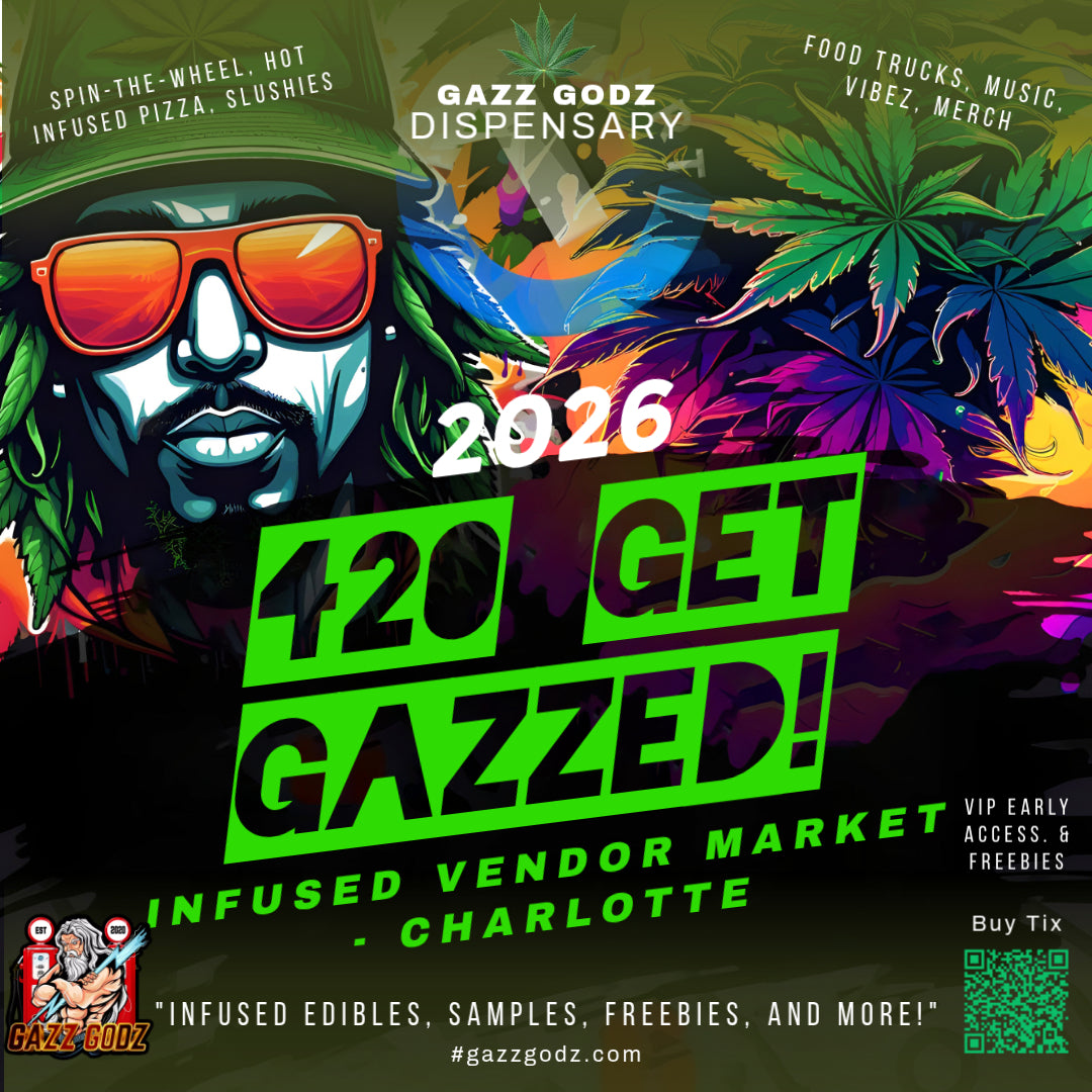Welcome to the FIRST ANNUAL 420 GET GAZZED! Infused Vendor Market Party at Gazz Godz Charlotte — where the city pulls up for the ultimate cannabis + food + vibe experience.